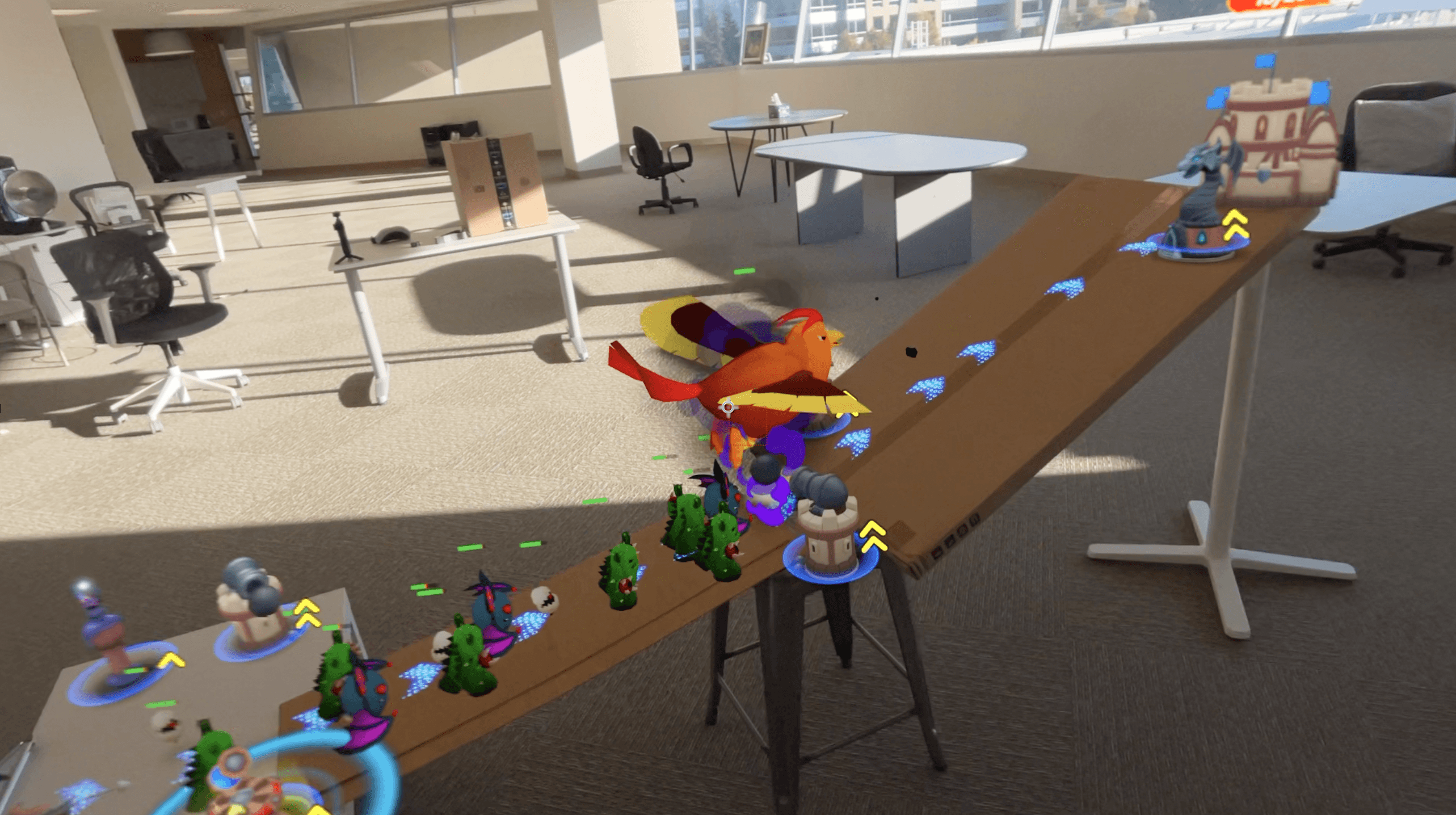 Players create custom battlefields with physical surroundings anywhere by designing routes between bases and spawn points, deploying towers strategically, and defending your castle from relentless monster waves.